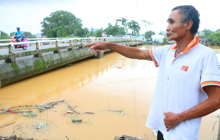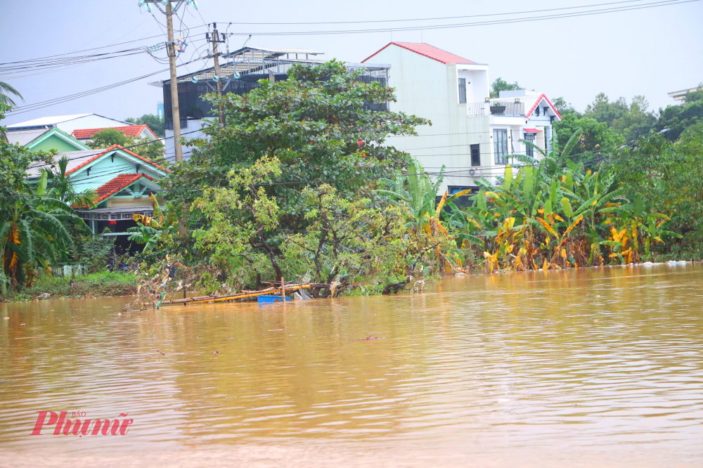 | Theo ghi nhận của phóng viên Báo Phụ nữ TPHCM, nước lũ trên sông Như Ý đã tràn vào khu vực thấp trũng |