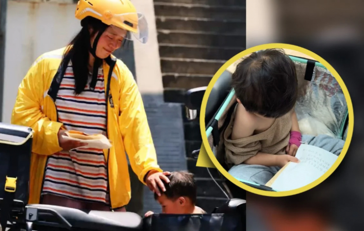 PNO - Người mẹ 25 tuổi giao thức ăn trên một chiếc xe đạp điện trong khi chở con gái trong thùng gắn với xe khiến nhiều người cảm động.