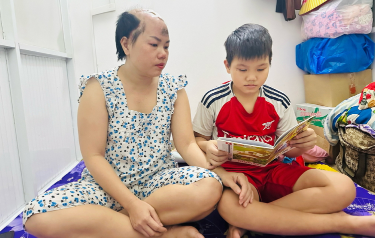 PNO - Chị trải qua ca phẫu thuật thứ ba với hơn 100 mũi khâu chạy dọc trên đầu để thu gọn phần tế bào bệnh, chi phí mất hơn 40 triệu đồng.