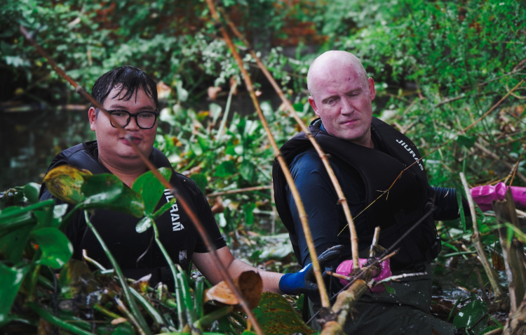 Theo chân nhóm Sài Gòn Xanh trong một lần dọn rác tại xã Bình Chánh, chúng tôi rất thán phục khi nhìn thấy những hình ảnh các thành viên trong nhóm gồm cả người nước ngoài sẵn sàng lội xuống dòng nước đen kịt hôi thối để khơi thông dòng chảy.