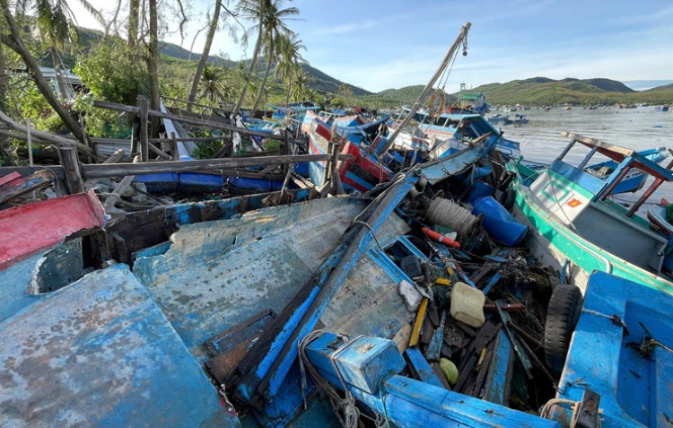 PNO - Sau bão, hàng loạt trụ điện gãy đổ ngổn ngang, ghe tàu hư hỏng, hàng chục con trâu bị chết ngạt.