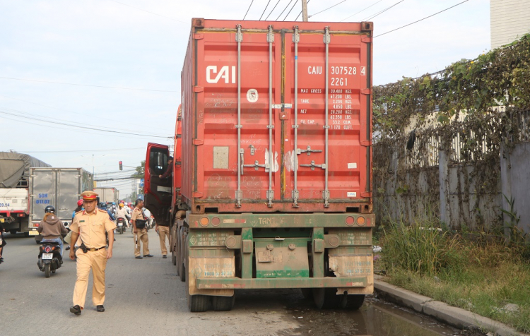 PNO - Sáng 20/11, Đội CSGT Rạch Chiếc, Phòng CSGT Công an TPHCM đã ra quân xử lý hàng loạt xe đầu kéo dừng đậu trên đường Độc Lập đoạn qua khu công nghiệp Sóng Thần.