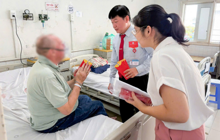 | Đón nhận lì xì từ TS.BS Võ Văn Tân - Trưởng khoa Nội Thần kinh, bệnh nhân người nước ngoài không khỏi bất ngờ. Sau khi được giải thích đây là văn hóa chúc tết của người Việt Nam, ông rất xúc động trước tình cảm của các bác sĩ. |