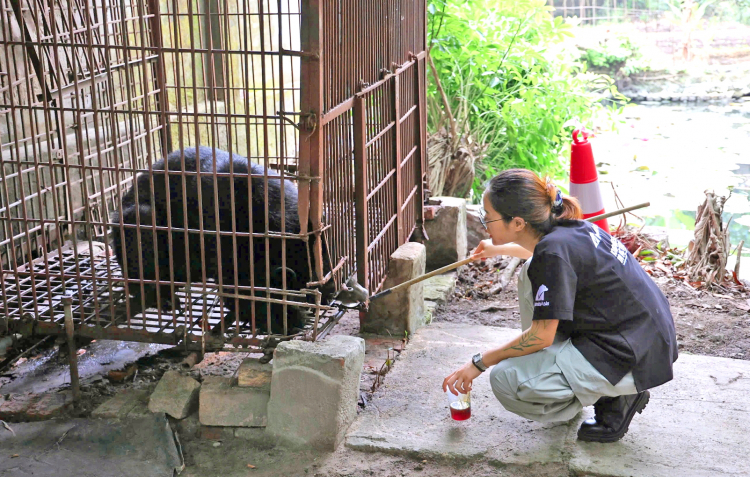 Ở khu vực điều trị cho các chú gấu vừa mới tiếp nhận từ Chi cục Kiểm lâm TP Hà Nội, bác sĩ thú y Phạm Thị Lan Hương (28 tuổi) đang cặm cụi với công việc. Tính đến nay bác sĩ Hương đã có 5 năm làm việc chính thức cho Tổ chức Động vật châu Á trong vai trò bác sĩ thú y đạt trình độ quốc tế. Chị sinh ra ở một vùng quê thuộc tỉnh Bắc Giang, rất yêu động vật và từ nhỏ đã mơ ước trở thành một bác sĩ thú y để cứu chữa những con vật đáng thương.