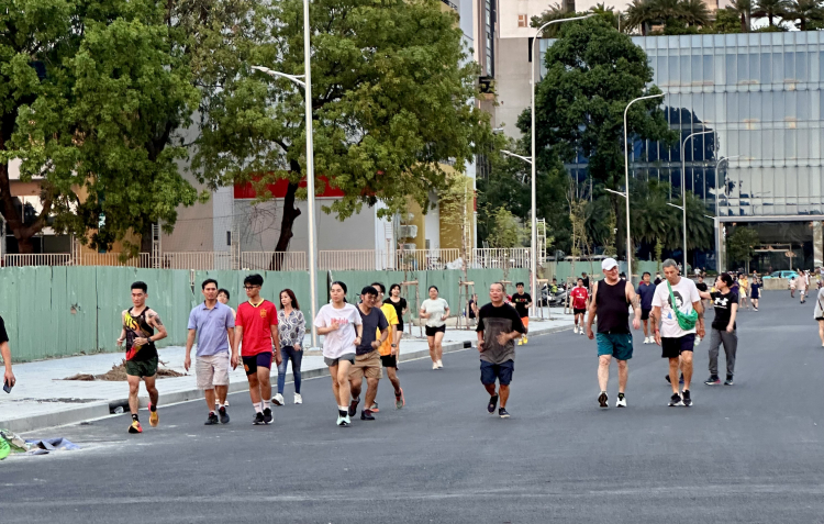 Vào mỗi buổi chiều, con đường còn thơm mùi nhựa mới lại tập trung hàng trăm người đến vui chơi. Người lớn tuổi đi bộ, tập dưỡng sinh, trẻ con chạy xe đạp, thả diều, trượt patin, kéo co, tiếng cười vang cả một góc đường.