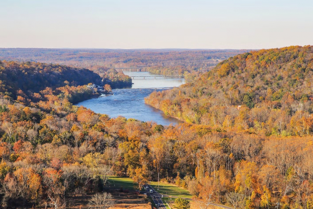 Ở đây, rừng hickory và bạch dương biến thành một bảng màu đồng và vàng, xen lẫn sắc đỏ và cam của cây phong và cây sồi. Bạn có thể chiêm ngưỡng cảnh này từ River Road, New Hope Railroad, các đường mòn đi bộ, hoặc ngay từ sự tiện nghi của Golden Plough Inn, nằm giữa trung tâm Peddler's Village.