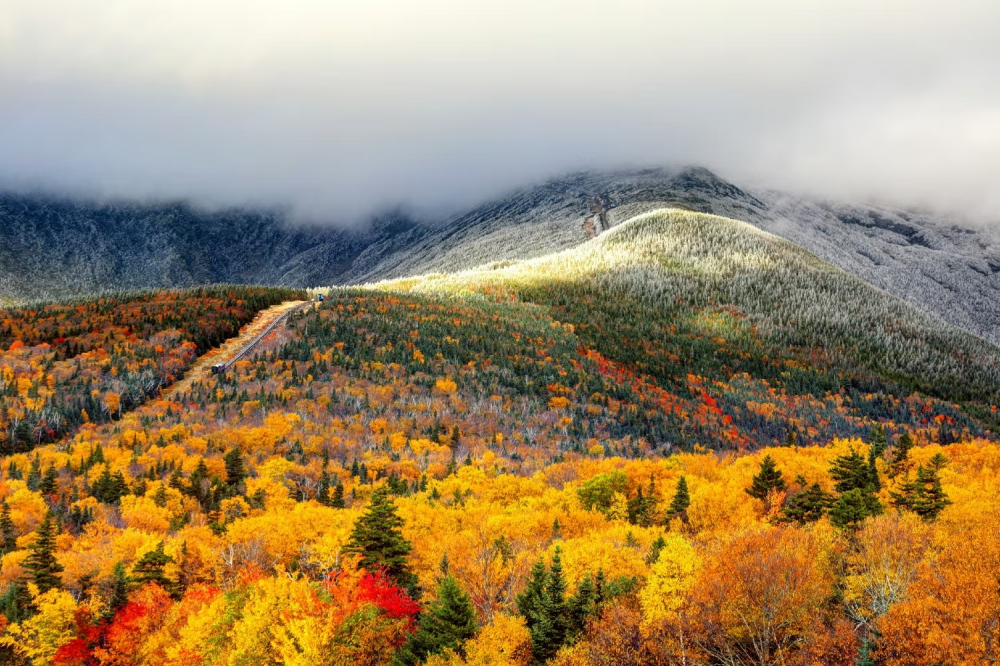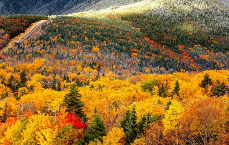 Những dãy núi White Mountains ở Bretton Woods, New Hampshire, khoác lên mình màu đỏ, cam và vàng rực rỡ vào đầu tháng Mười. Bạn có thể ngắm trọn cảnh sắc ngoạn mục từ Mount Washington Cog Railway, tuyến đường sắt leo núi bằng bánh răng đầu tiên trên thế giới. Nếu muốn trải nghiệm mạo hiểm hơn, hãy thử Bretton Woods Canopy Tour với zipline trên tán cây, ngắm toàn cảnh núi Mount Washington. Nghỉ tại Omni Mount Washington để tận hưởng không gian rừng thu tuyệt đẹp.