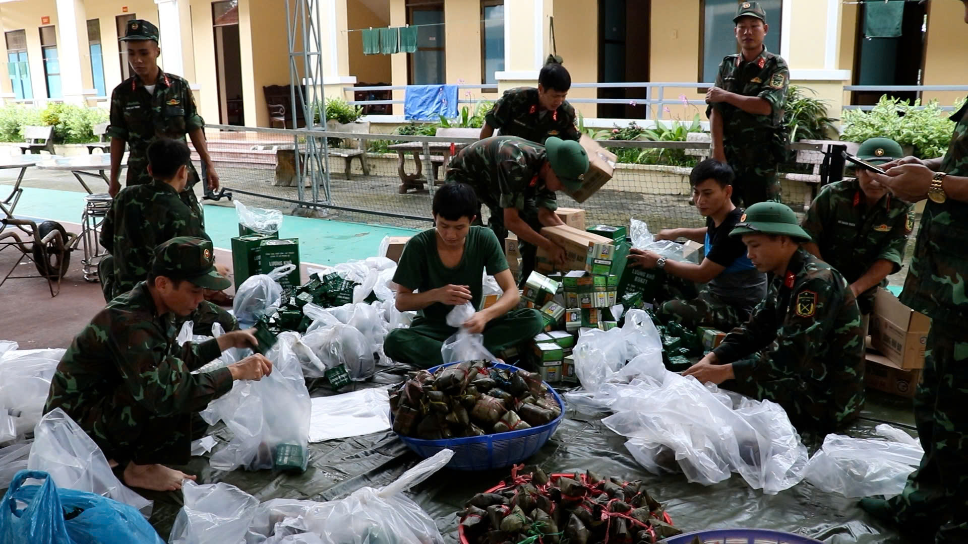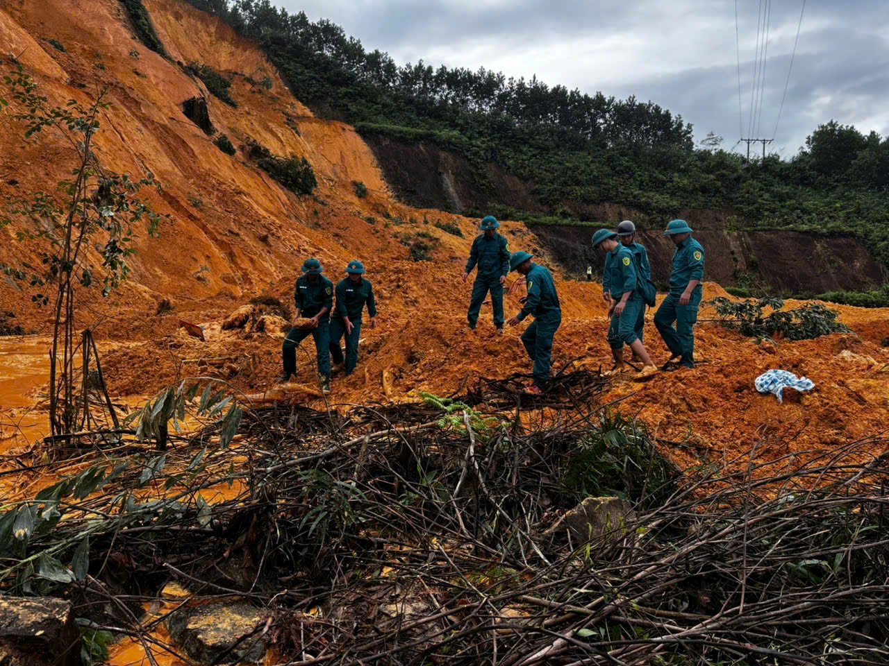 Cán bộ, chiến sỹ Lữ đoàn 270 (Quân khu 5) tiếp tục hành quân vượt núi đồi sạt lở vào các thôn bị cô lập của xã Trà Tân (Đà Nẵng).