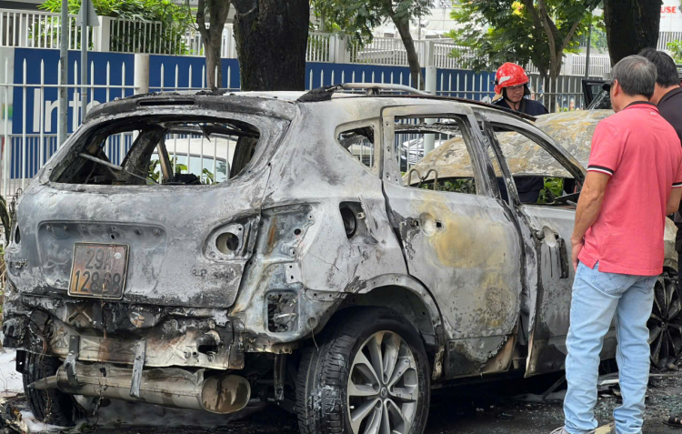 PNO - Trưa 16/11, Công an phường An Khánh, TPHCM phối hợp với các đơn vị nghiệp vụ Công an TPHCM khám nghiệm hiện trường, điều tra làm rõ nguyên nhân vụ chiếc ô tô bốc cháy trước chung cư Hoàng Anh River View trên đường Nguyễn Văn Hưởng.