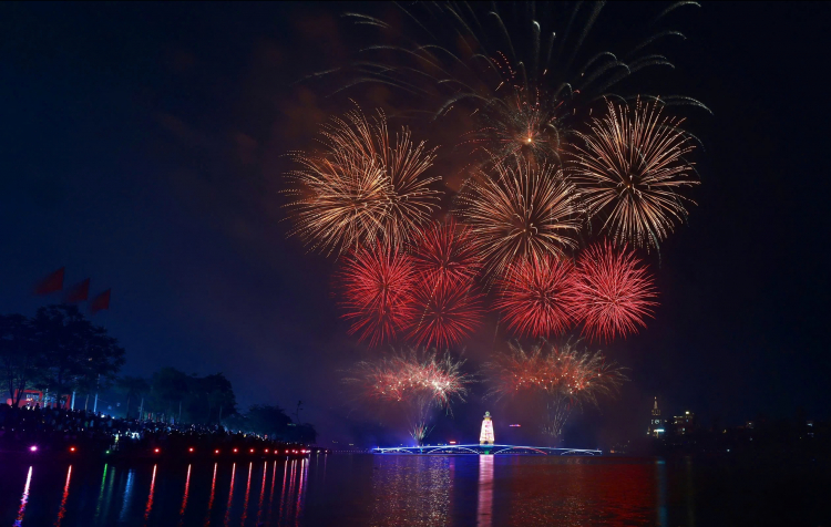 PNO - Tối 25/4 (9/3 âm lịch), hàng vạn người dân, du khách đổ về công viên Văn Lang (TP Việt Trì, tỉnh Phú Thọ) để chờ đợi, theo dõi bắn pháo hoa.