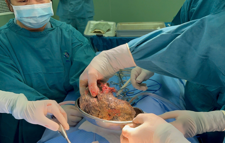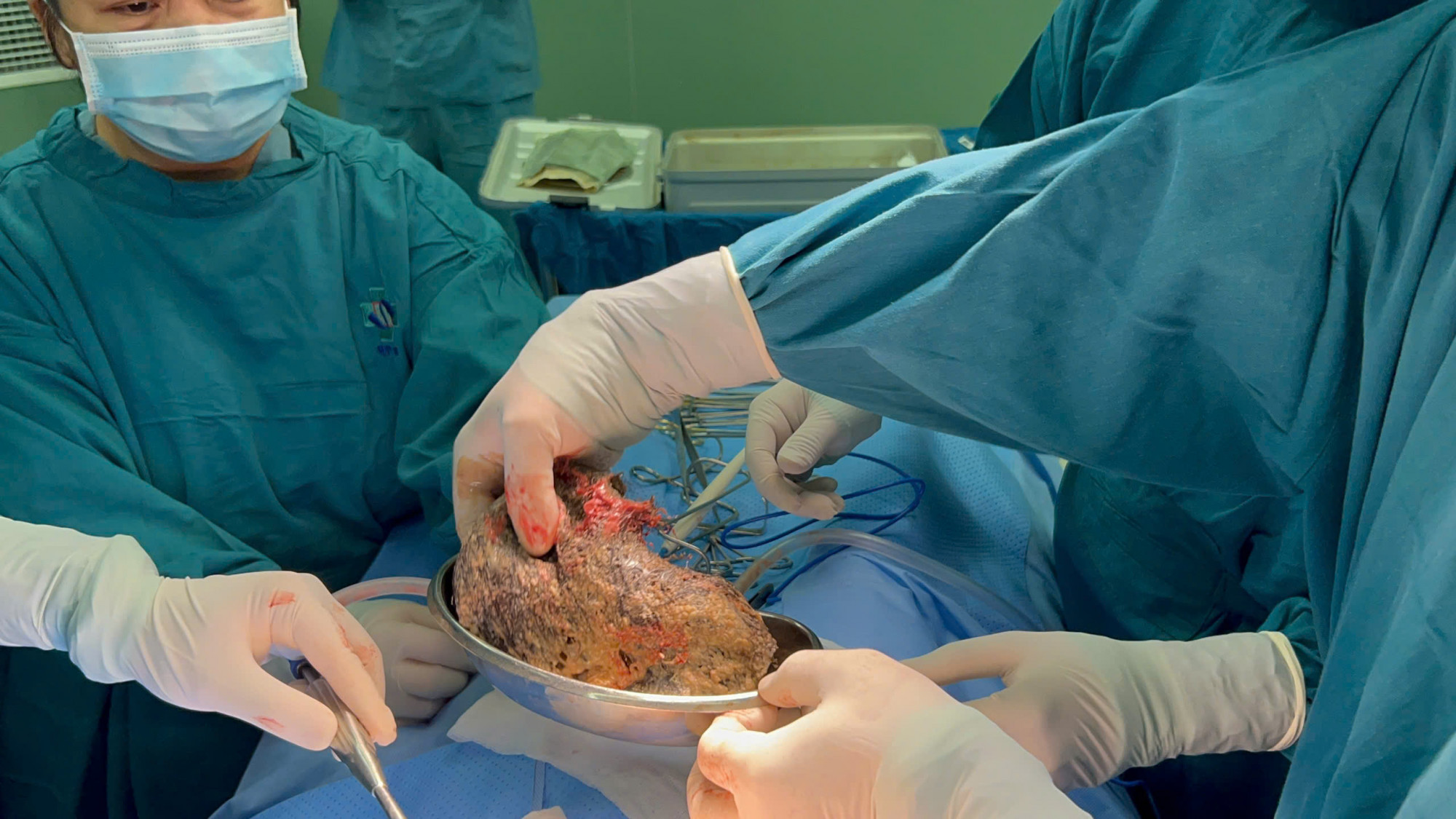 Do khối u lớn, bất thường, các bác sĩ phải cắt toàn bộ buồng trứng, vòi trứng, tử cung.