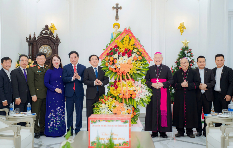 PNO - Sáng 18/12, Phó Thủ tướng Chính phủ Hồ Quốc Dũng cùng đoàn công tác Chính phủ đến thăm, chúc mừng Giáng sinh tại Tòa Tổng Giám mục Tổng giáo phận Huế.