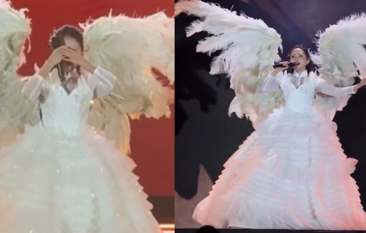 PNO - Nữ ca sĩ không kìm được cảm xúc khi biểu diễn tiết mục 'Bóng phù hoa', được hàng ngàn khán giả hát theo.