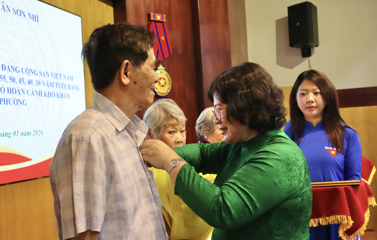 PNO - Sáng 26/1, Đảng ủy phường Tân Sơn Nhì (TPHCM) tổ chức Lễ kỷ niệm 96 năm Ngày thành lập Đảng Cộng sản Việt Nam (3/2/1930 - 3/2/2026), kết hợp trao tặng Huy hiệu Đảng và quà tết cho các đảng viên có hoàn cảnh khó khăn trên địa bàn phường.