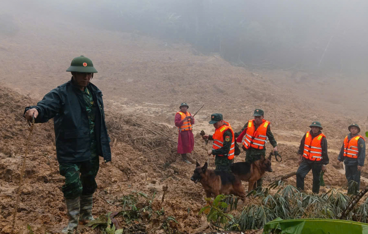 PNO - Sáng 16/11, Quân khu 5 tăng cường hàng trăm quân nhân, đồng thời tăng cường quân khuyển - được huấn luyện đặc biệt cho công tác tìm kiếm cứu nạn – vào hiện trường sạt lở thôn Pứt, xã Hùng Sơn, Đà Nẵng tìm kiếm nạn nhân mất tích.