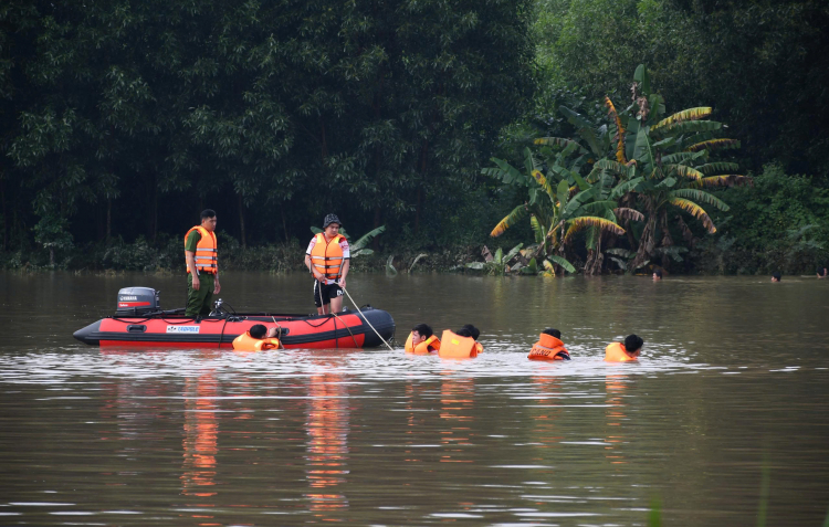 Bằng ca nô hoặc xe chuyên dụng, lực lượng công an mang máy phát điện đến từng khu dân cư bị cô lập để sạc điện thoại cho người dân.