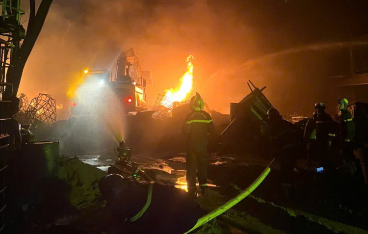 PNO - Tối 25/4, một khu kho xưởng trên địa bàn xã Đông Anh (Hà Nội) bất ngờ bốc cháy dữ dội, kèm theo nhiều tiếng nổ lớn và cột khói đen bốc cao hàng chục mét. Cảnh sát cùng hàng chục phương tiện chữa cháy được huy động.