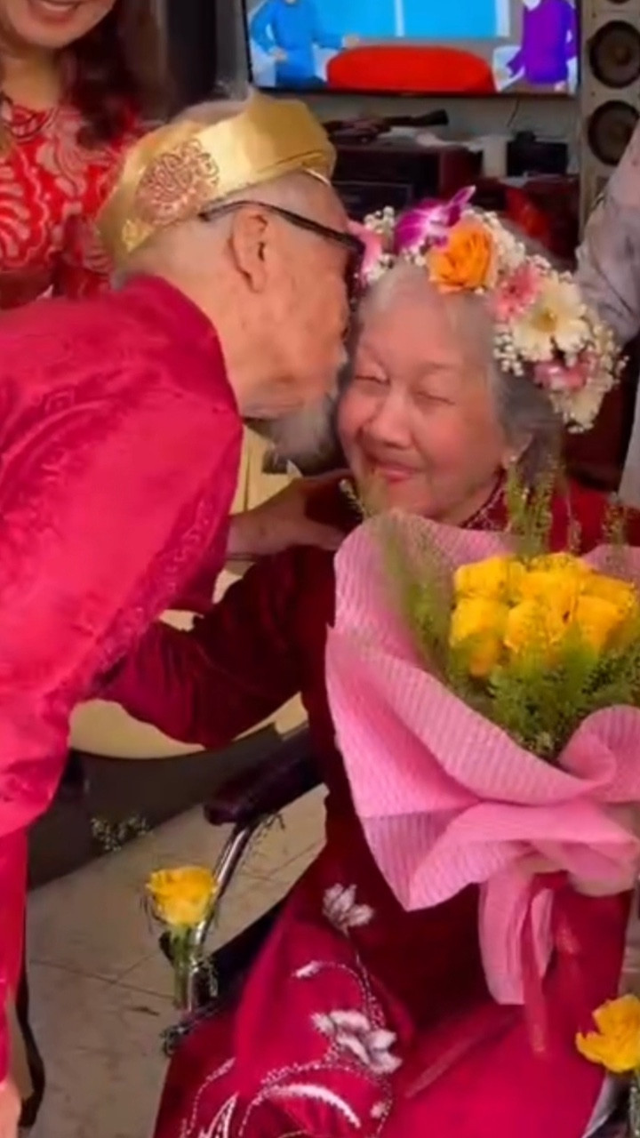 Con cháu quây quần trong lễ kỷ niệm 60 năm ngày cưới của cụ ông gần 100 tuổi