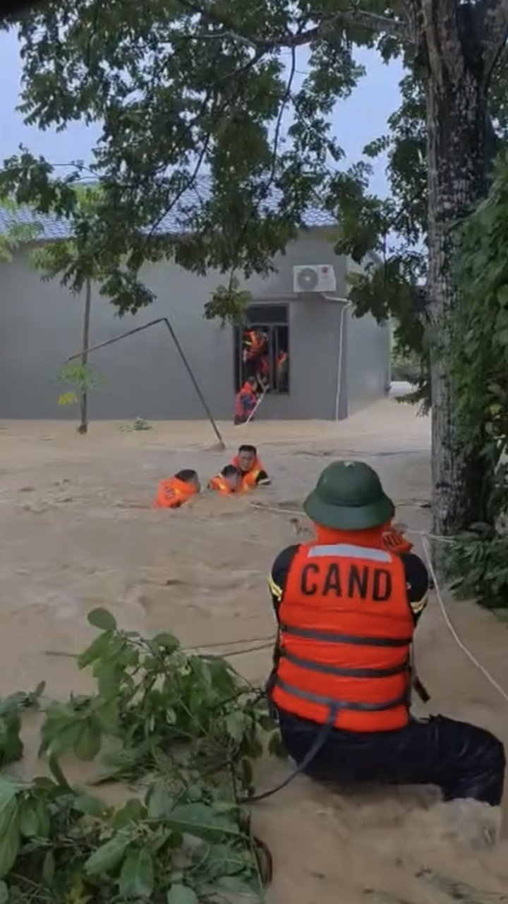 Bế cháu bé 20 ngày tuổi vượt lũ đi cấp cứu kịp thời