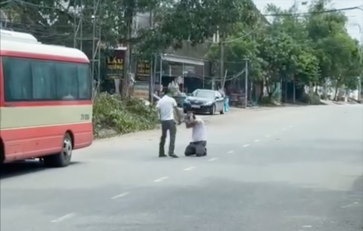 PNO - Nam tài xế xe buýt bị hành khách ép quỳ giữa đường rồi dùng thắt lưng đánh dù nhiều người can ngăn.