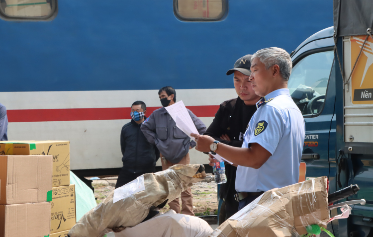 PNO - Theo Cục Quản lý và phát triển thị trường trong nước, ngày 14/1, trong quá trình kiểm tra tại khu vực sân cửa ra ga số 8 (ga Hà Nội), lực lượng quản lý thị trường và Công an TP Hà Nội đã phát hiện nhiều lô hàng có dấu hiệu vi phạm đang chờ vận chuyển đi các địa phương.