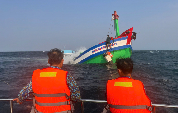 PNO - Khi lực lượng cứu nạn Hải đội Biên phòng Đà Nẵng tiếp cận thì tàu cá đang chìm dần, 2 ngư dân nhanh chóng được ứng cứu.