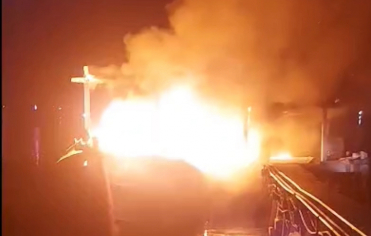 Khuya 21/4, sau khi cập bến tại cơ sở nước đá Bùi Dinh ở phường Thuận An, TP Huế, một tàu cá bất ngờ bốc cháy dữ dội.