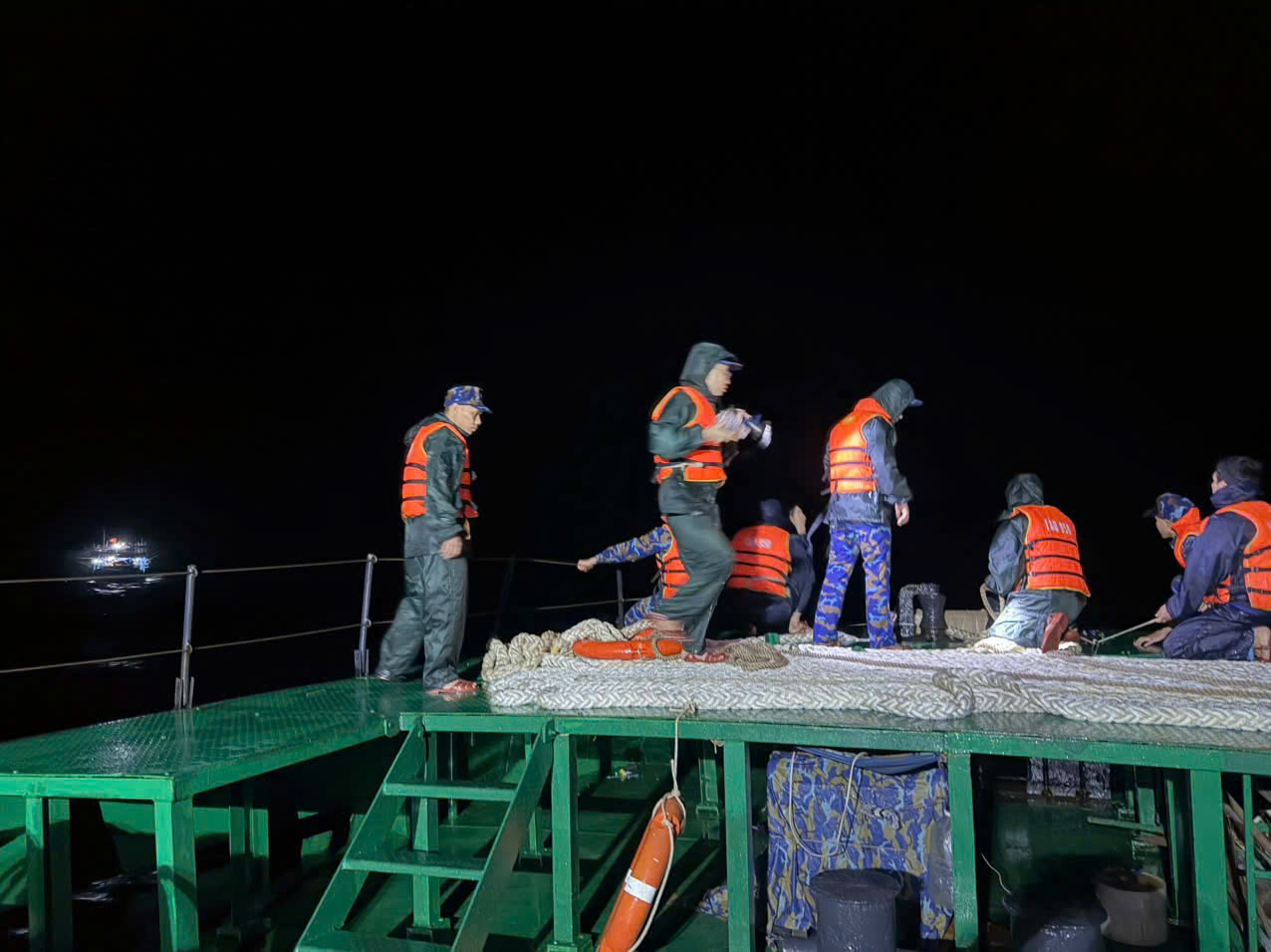 PNO - Tàu hải quân HQ 950 (Lữ đoàn 955, Vùng 4 Hải quân) vừa lai dắt tàu cá Quảng Ngãi QNg 90459 TS cùng 36 ngư dân về bờ an toàn.