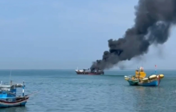 Sáng 29/4, tại khu vực ngoài khơi xã Liên Hương (Lâm Đồng), tàu chở dầu “Đại Hòa” bất ngờ phát nổ và bốc cháy khi đang sửa chữa, khiến 2 người bị hất xuống biển và bỏng nặng, 1 người nghi mất tích.