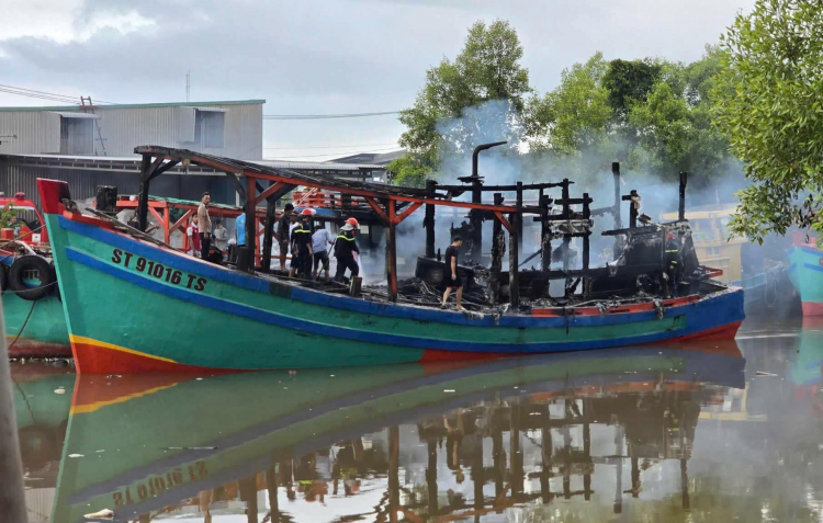 PNO - Sự cố chập điện đã khiến cho tàu thu mua hải sản bốc cháy dữ dội, gây thiệt hại hàng trăm triệu đồng.