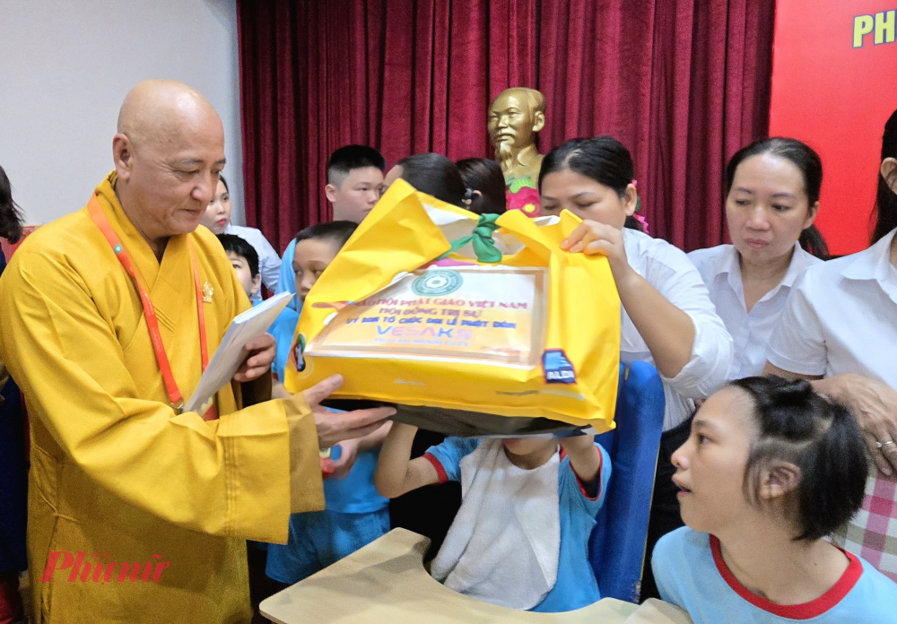 PNO - Trong khuôn khổ Đại lễ Vesak 2025, đoàn công tác Bộ Dân tộc và Tôn giáo, Giáo hội Phật giáo Việt Nam đã tặng quà cho 230 trẻ khuyết tật tại TPHCM .