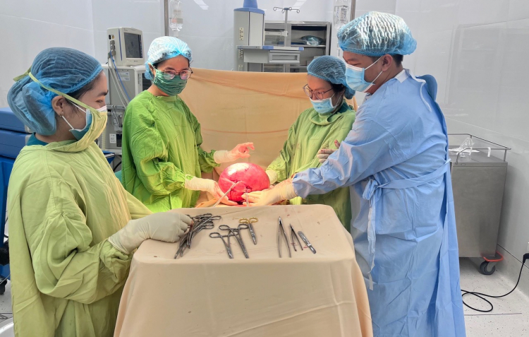 PNO - Chiều 14/10, Bệnh viện Đa khoa Thủ Đức cho biết đã phẫu thuật, xử lý khối u xơ tử cung khổng lồ cho chị B.T.L. (46 tuổi, ở Cà Mau).