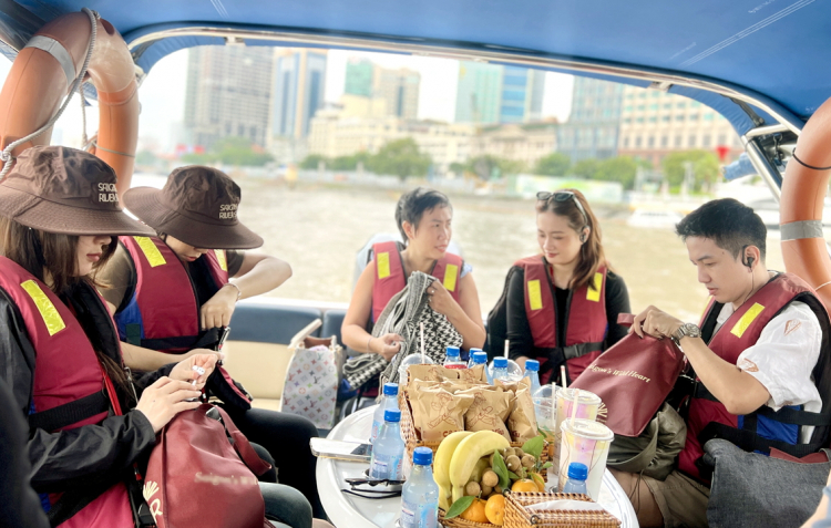 PNO - Sáng sớm, tại Bến Bạch Đằng, chị Xiaomi Mini - 33 tuổi, đến từ tỉnh Quảng Đông, Trung Quốc - dùng điện thoại ghi lại khoảnh khắc mặt sông Sài Gòn phủ lóp sương nhẹ. Sau đó, chị cùng khoảng 10 du khách quốc tế đi ca nô cao tốc ngược lên thượng nguồn sông Sài Gòn, tới Củ Chi.