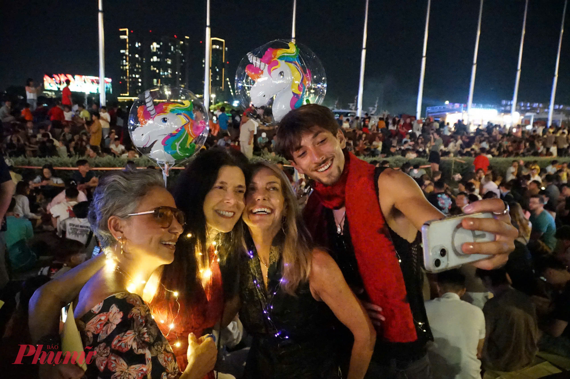 | Một số bạn trẻ, các gia đình check in dưới màn pháo hoa rực rỡ. |