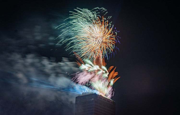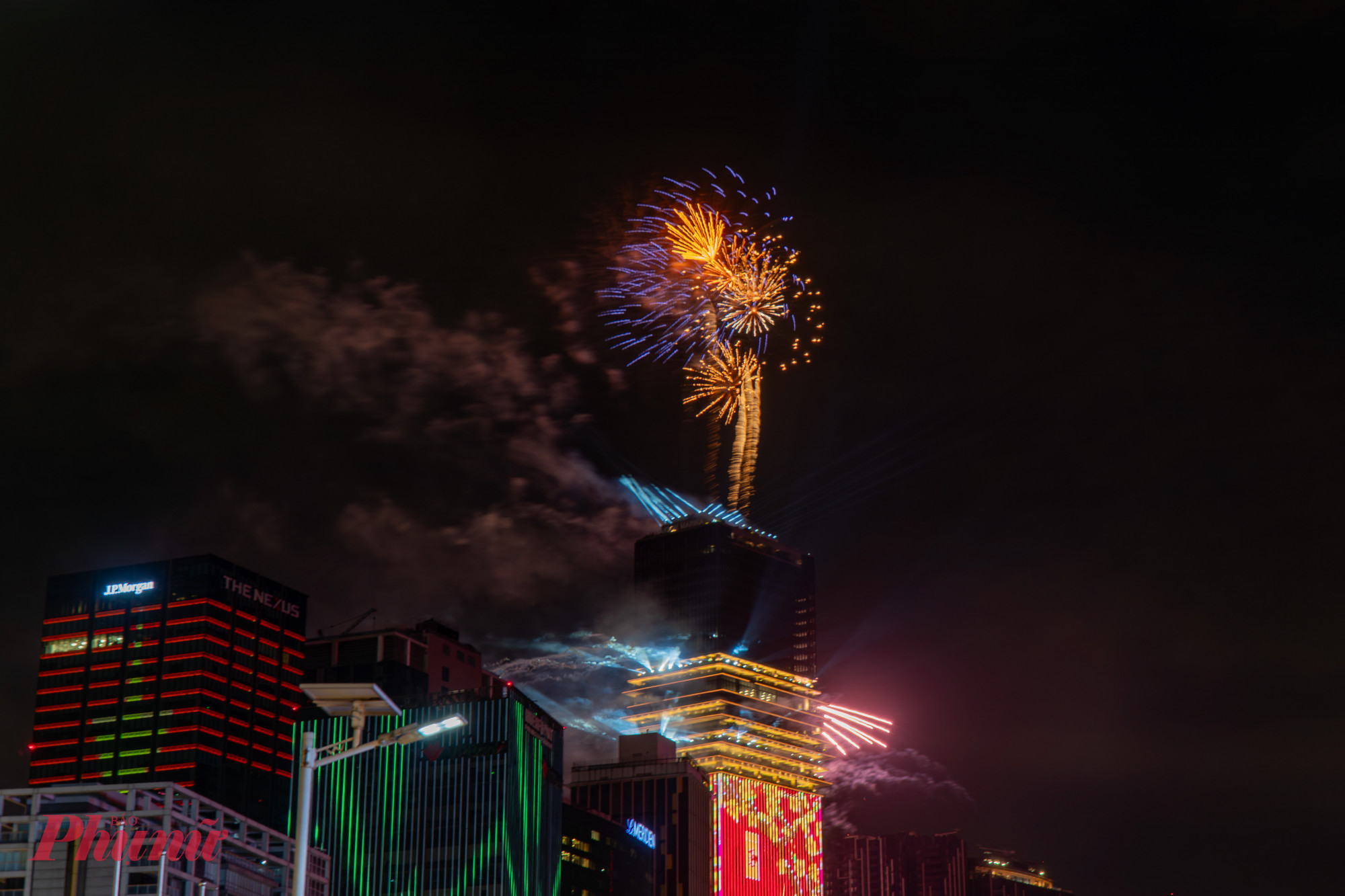 | Pháo hoa được bắn lên từ trên toàn nhà Saigon Marina IFC. |