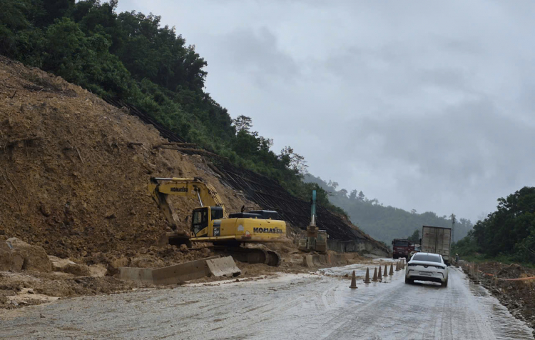 Mưa lớn gây ngập, sạt lở, đất đá rơi xuống Quốc lộ 1 qua Khánh Hoà - Lâm Đồng khiến giao thông bị ảnh hưởng.