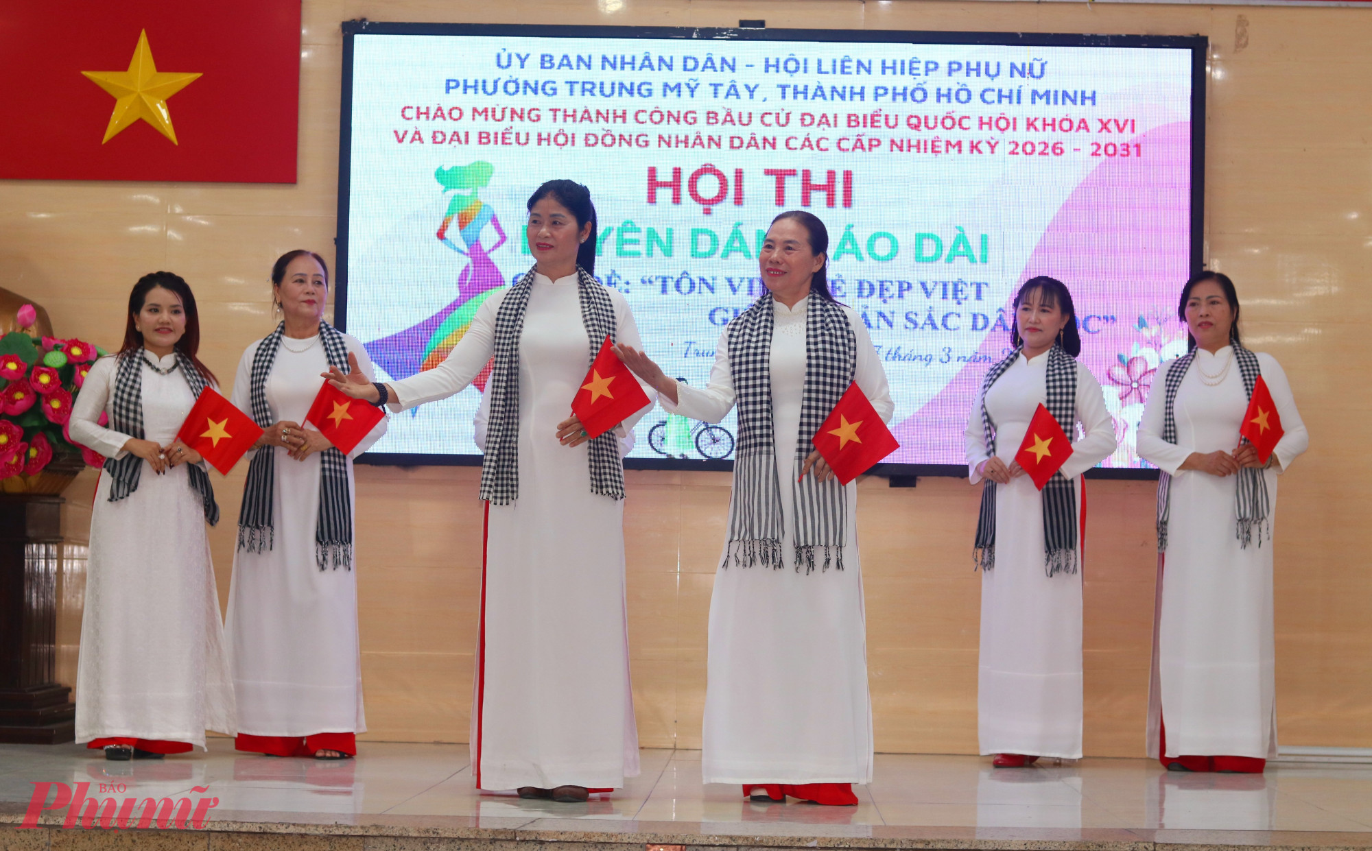 PNO - Tối 27/3, tại phường Trung Mỹ Tây, TPHCM đã diễn ra hội thi Duyên dáng áo dài với chủ đề “Tôn vinh vẻ đẹp Việt - Giữ gìn bản sắc dân tộc”.