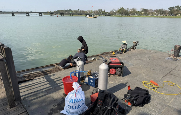 PNO - Đội SOS75 - Đội 0 đồng Huế (TP Huế) đã tìm được 2 miếng vàng của đôi vợ chồng du khách đánh rơi xuống sông Hương tại khu vực cầu đi bộ gỗ Lim.