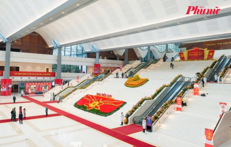 Trung tâm Hội nghị Quốc gia (Hà Nội) – nơi diễn ra Đại hội đại biểu toàn quốc lần thứ XIV của Đảng – đã cơ bản hoàn tất công tác chuẩn bị. Bên trong sảnh chính, không gian được trang hoàng trang trọng với cờ hoa, biểu ngữ, tạo khí thế nghiêm trang, đúng tầm vóc của sự kiện chính trị trọng đại của đất nước.