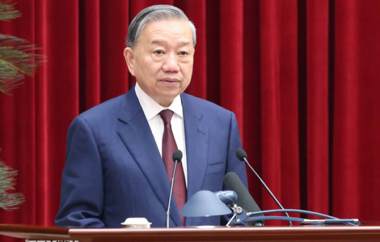 | Tổng bí thư Tô Lâm phát biểu bế mạc Hội nghị lần thứ hai Ban Chấp hành Trung ương Đảng khóa XIV - Ảnh: TTXVN |