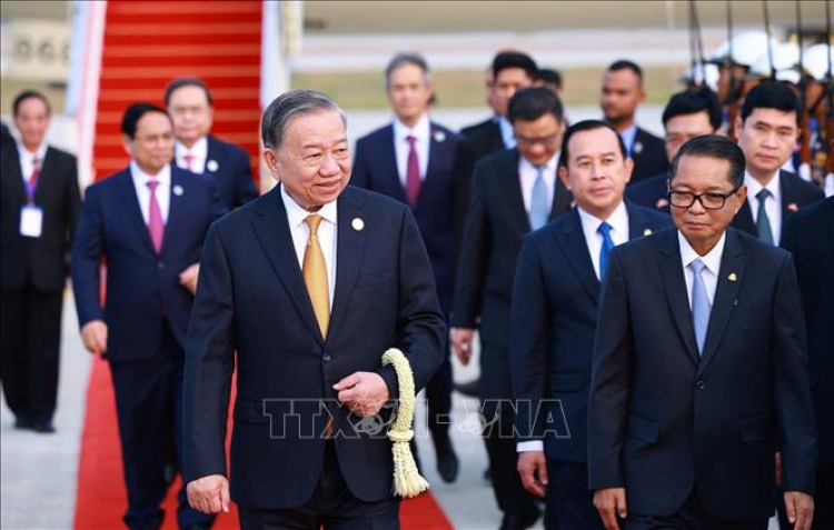 Sáng 6/2, Tổng bí thư Tô Lâm cùng Đoàn đại biểu cấp cao Việt Nam đến thủ đô Phnom Penh, bắt đầu thăm cấp Nhà nước tới Vương quốc Campuchia theo lời mời của Quốc vương Campuchia Preah Bat Samdech Preah Boromneath Norodom Sihamoni.