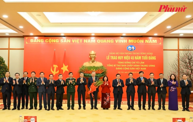 Kỷ niệm 96 năm Ngày thành lập Đảng Cộng sản Việt Nam (3/2/1930 - 3/2/2026), sáng 3/2, tại Trụ sở Trung ương Đảng, Đảng ủy Văn phòng Trung ương Đảng đã tổ chức Lễ trao Huy hiệu 45 năm tuổi Đảng tặng đồng chí Tô Lâm, Tổng bí thư Ban Chấp hành Trung ương Đảng Cộng sản Việt Nam.