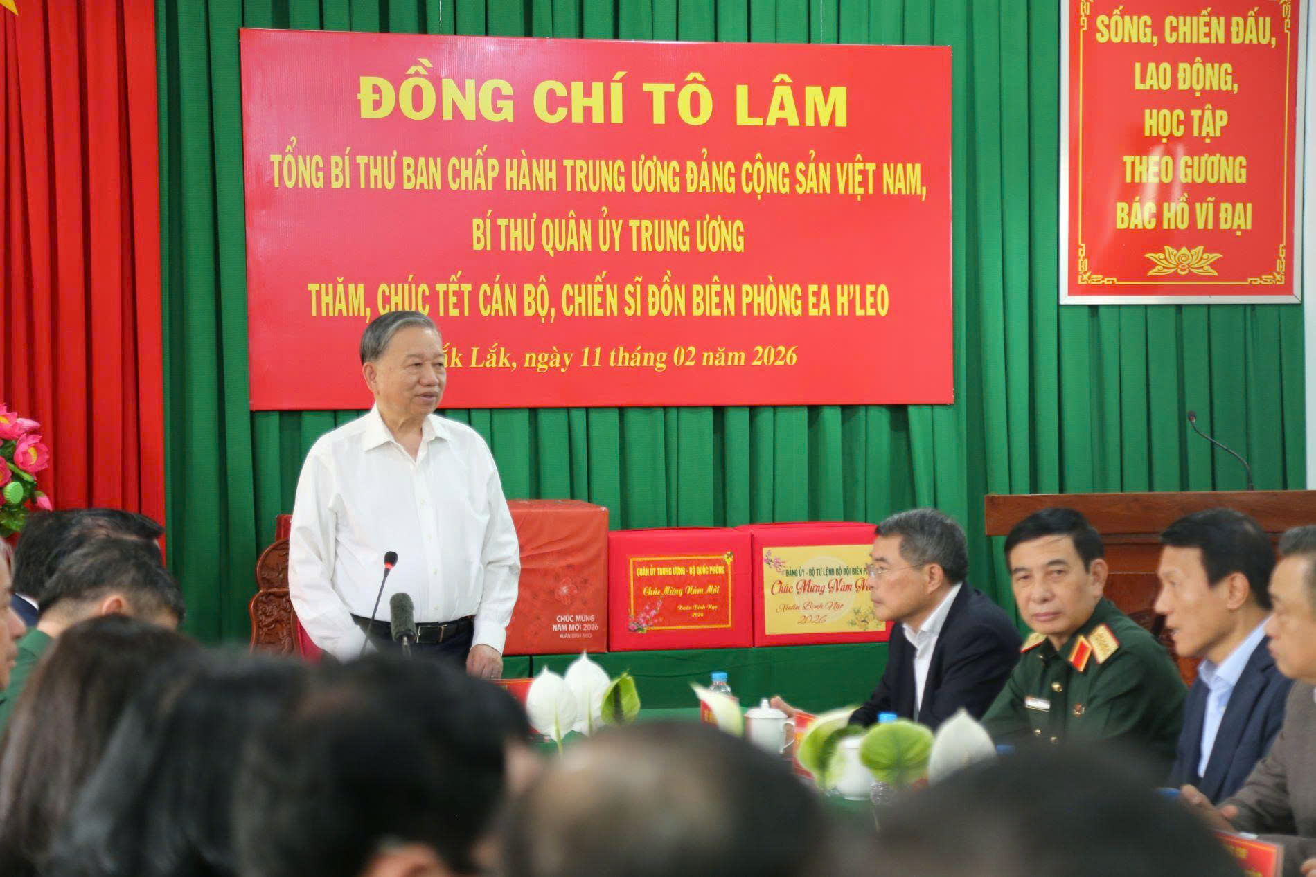 PNO - Trong chương trình công tác tại tỉnh Đắk Lắk, trưa 11/2, Tổng Bí thư Tô Lâm - Bí thư Quân ủy Trung ương - đã đến thăm, chúc tết cán bộ, chiến sĩ Đồn Biên phòng Ea H’Leo, thuộc Ban Chỉ huy Bộ đội Biên phòng tỉnh Đắk Lắk.