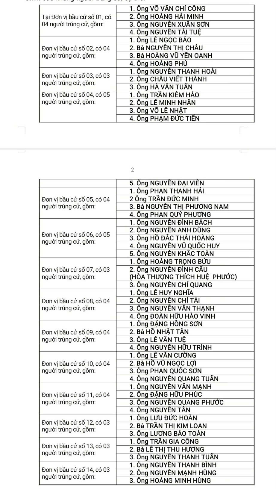 PNO - TP Huế không có đơn vị bầu cử nào phải tổ chức bầu lại hoặc bầu thêm.