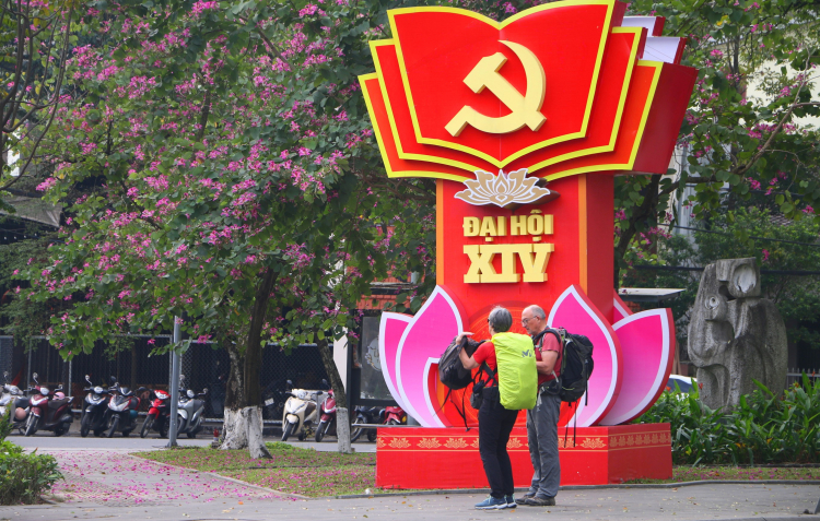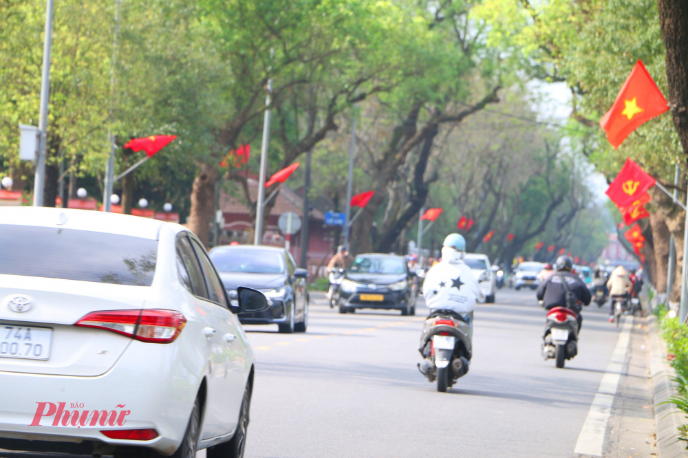 | Tuyến đường Lê Lợi được treo cờ Tổ quốc. Trước bia trường THPT Quốc học Huế và tại ngã 4 cầu Trường Tiền, cầu Nguyễn Hoàng, cầu Phú Xuân, các giao lộ ở trung tâm thành phố…., nhiều pa nô, áp phích và băng rôn tuyên truyền Đại hội lần thứ XIV của Đảng được trang hoàng. |