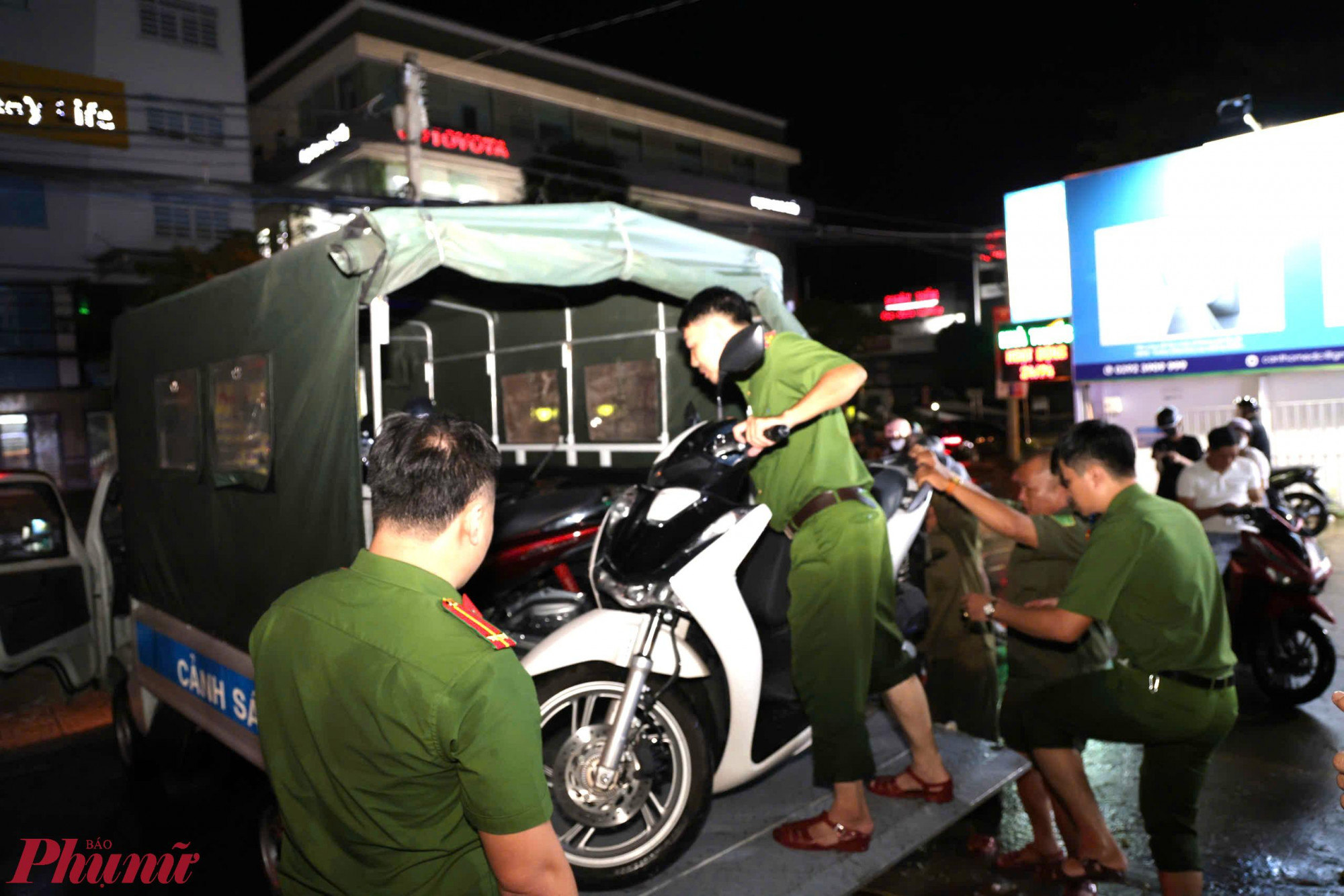 Cơ quan chức năng luôn chia nhau túc trực trên đường để hỗ trợ người dân. Ảnh: Trung Phạm