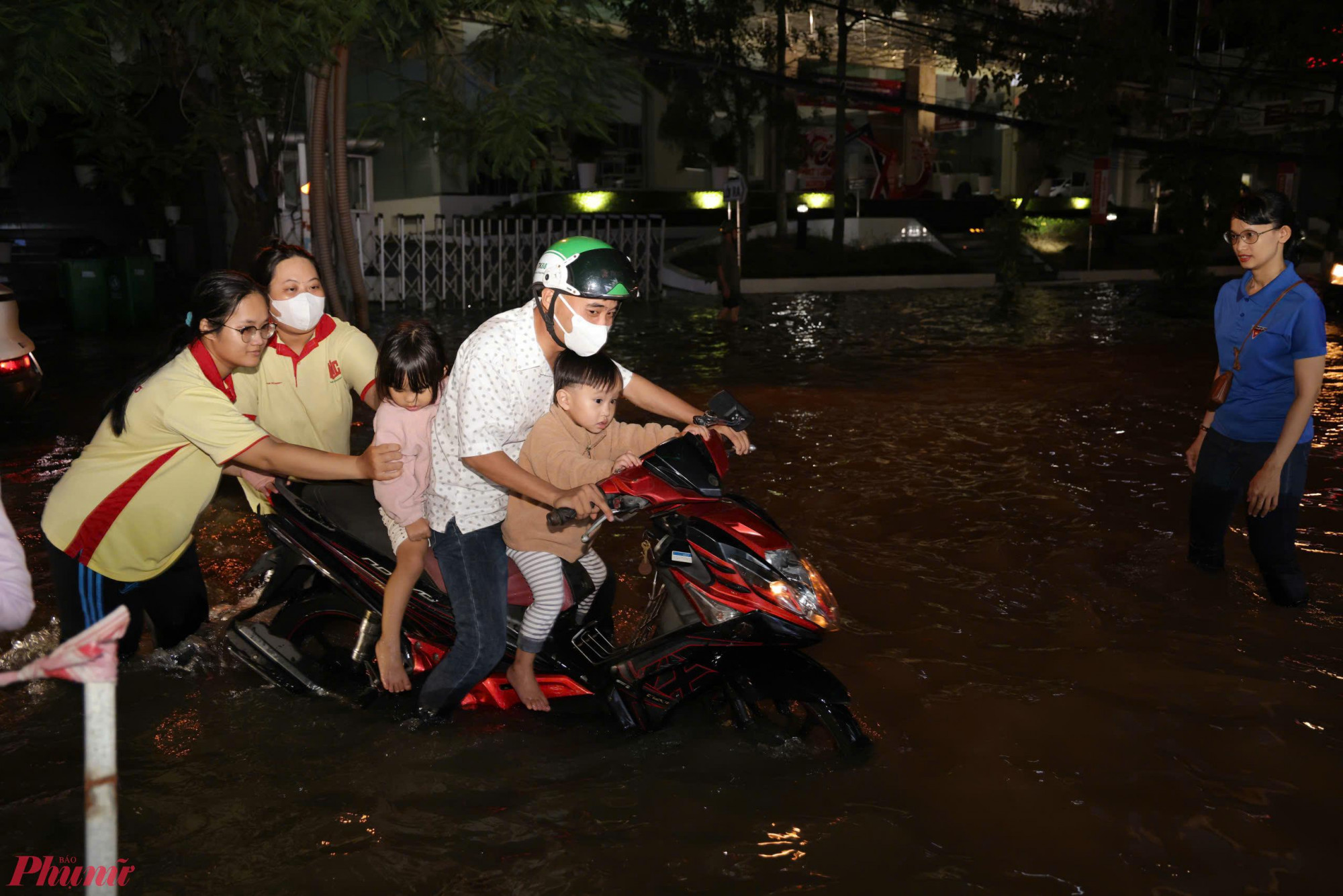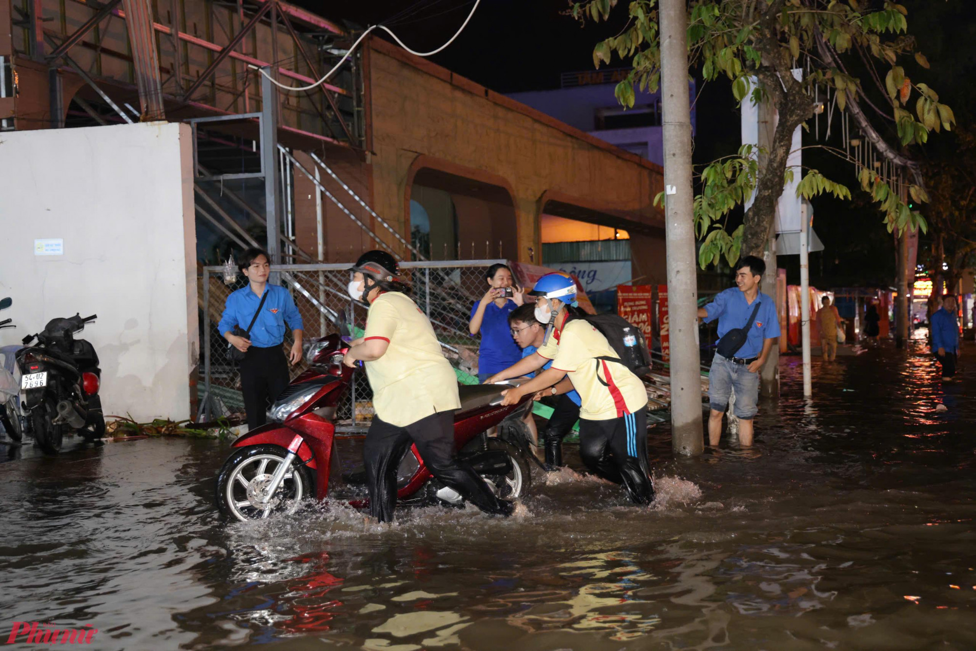 lực lượng công an, quân sự, dân phòng, đoàn thanh niên, sinh viên… đã có mặt ở các nơi ngập sâu để hỗ trợ bà con đi lại,