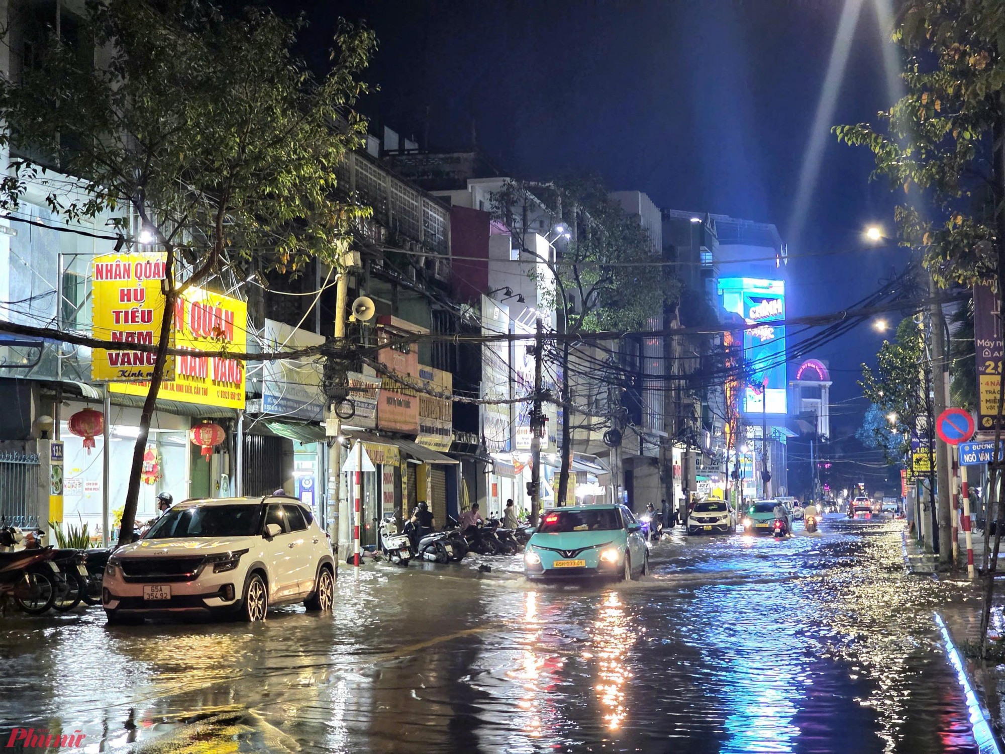 Mưa lớn kết hợp triều cường gây ngập một số tuyến đường. Ảnh: Ngọc Khánh