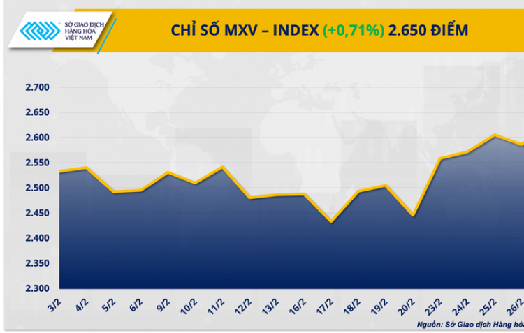 PNO - Căng thẳng leo thang tại Trung Đông đã kích hoạt làn sóng mua mạnh trên thị trường năng lượng, đẩy giá dầu tăng gần 7% chỉ sau một phiên. Trong khi đó, áp lực chốt lời gia tăng trên thị trường nông sản đã kéo giá lúa mì đảo chiều suy yếu nhanh. Đóng cửa, MXV-Index tăng hơn 0,7% lên 2.650 điểm, nối dài chuỗi tăng sang phiên thứ ba liên tiếp.