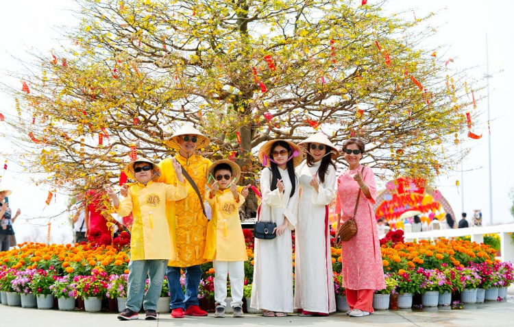 Valentine tại Green Paradise Tet Fest đã vượt khỏi khuôn khổ một ngày lễ dành cho đôi lứa, để trở thành điểm hẹn đoàn viên những ngày giáp tết. Tại các đại cảnh xuân, dễ dàng bắt gặp hình ảnh gia đình ba thế hệ cùng chụp ảnh đầu năm, lưu giữ khoảnh khắc sum vầy giữa biển trời khoáng đạt.